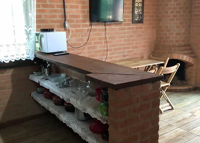 Chale Mirante Da Serra Rua E Nova Ibitipoca Lima Duarte Mg features a full kitchen, as well as a mini-fridge-bar for dining onsite. The 1-bathroom villa is also accessible from Aeroporto da Serrinha airport, which is about 90 km away.